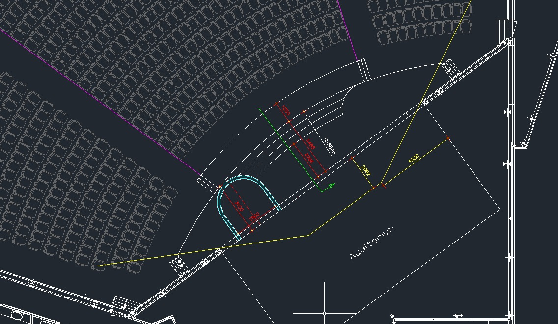podium aanpassing – bovenaanzicht met zichtlijnen: